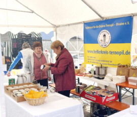 Bei strahlendem Sonnenschein organisierte der Helfergeist Thernopil erneut eine Spendenaktion zugunsten der Diözese Ternopil in der Westukraine. Im Mittelpunkt standen wunderschön gestaltete Ostereier aus der Ukraine sowie selbstgebastelter Osterschmuck, die bei den Besuchern großen Anklang fanden. Die Einnahmen fließen direkt in die Unterstützung der notleidenden Bevölkerung vor Ort.