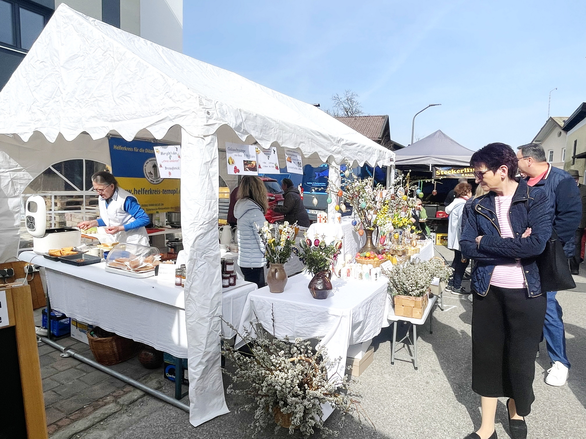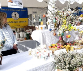 Bei strahlendem Sonnenschein organisierte der Helfergeist Thernopil erneut eine Spendenaktion zugunsten der Diözese Ternopil in der Westukraine. Im Mittelpunkt standen wunderschön gestaltete Ostereier aus der Ukraine sowie selbstgebastelter Osterschmuck, die bei den Besuchern großen Anklang fanden. Die Einnahmen fließen direkt in die Unterstützung der notleidenden Bevölkerung vor Ort.